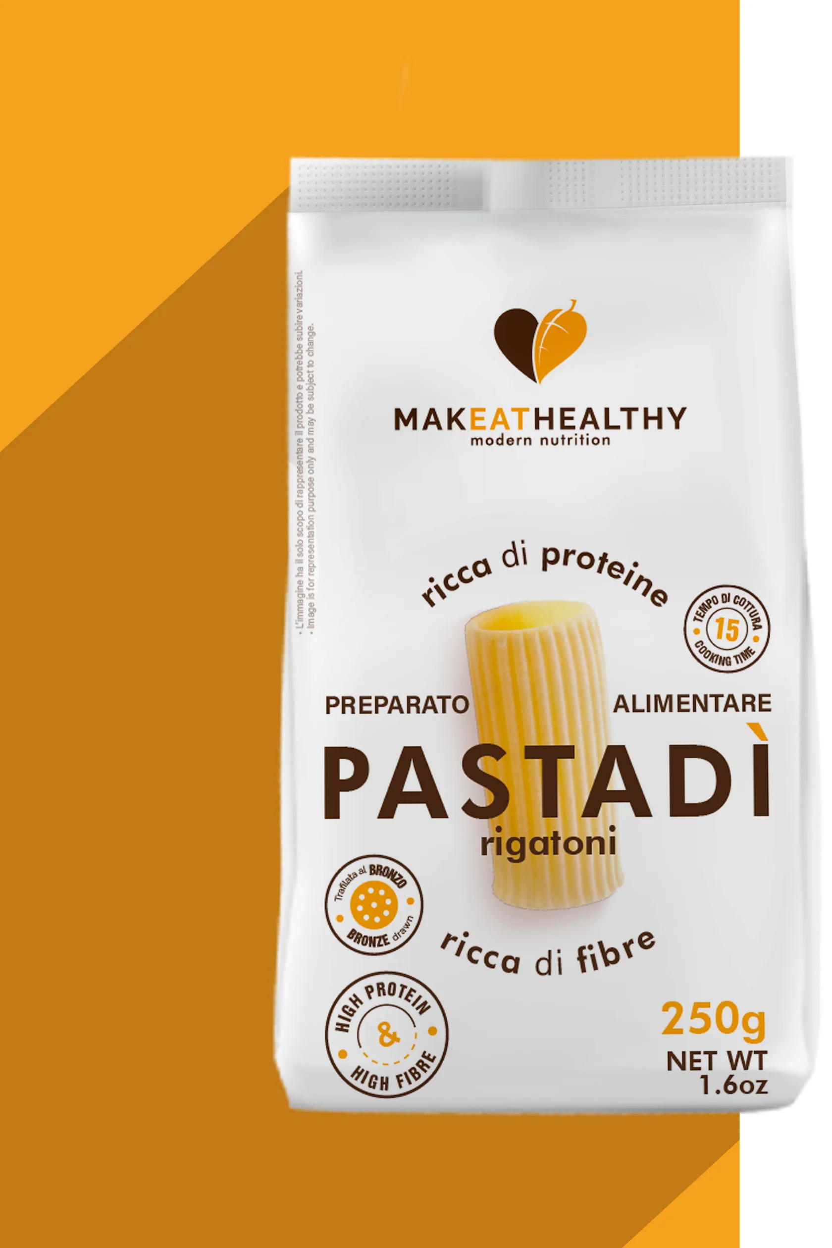 INGREDIENTI:Semola di GRANO duro, glutine di FRUMENTO, acqua, amido resistente di tapioca, fibra di FRUMENTO.